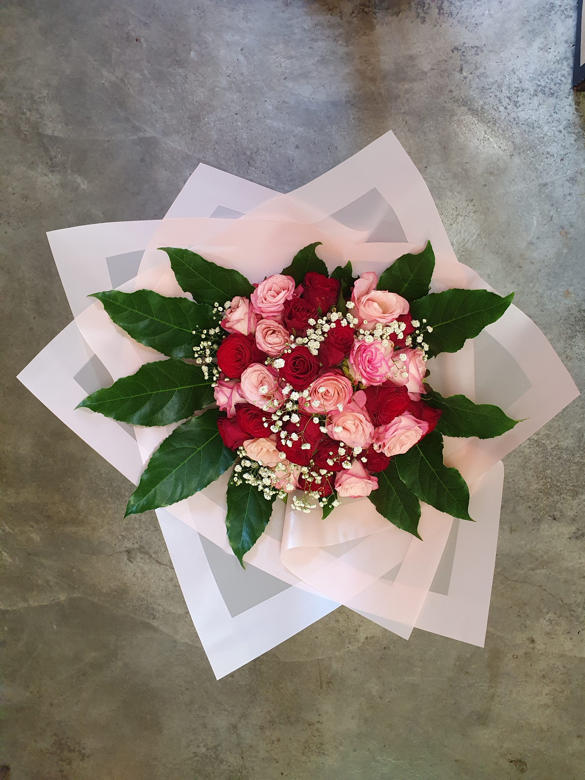 24 Red and pink rose bouquet quantity