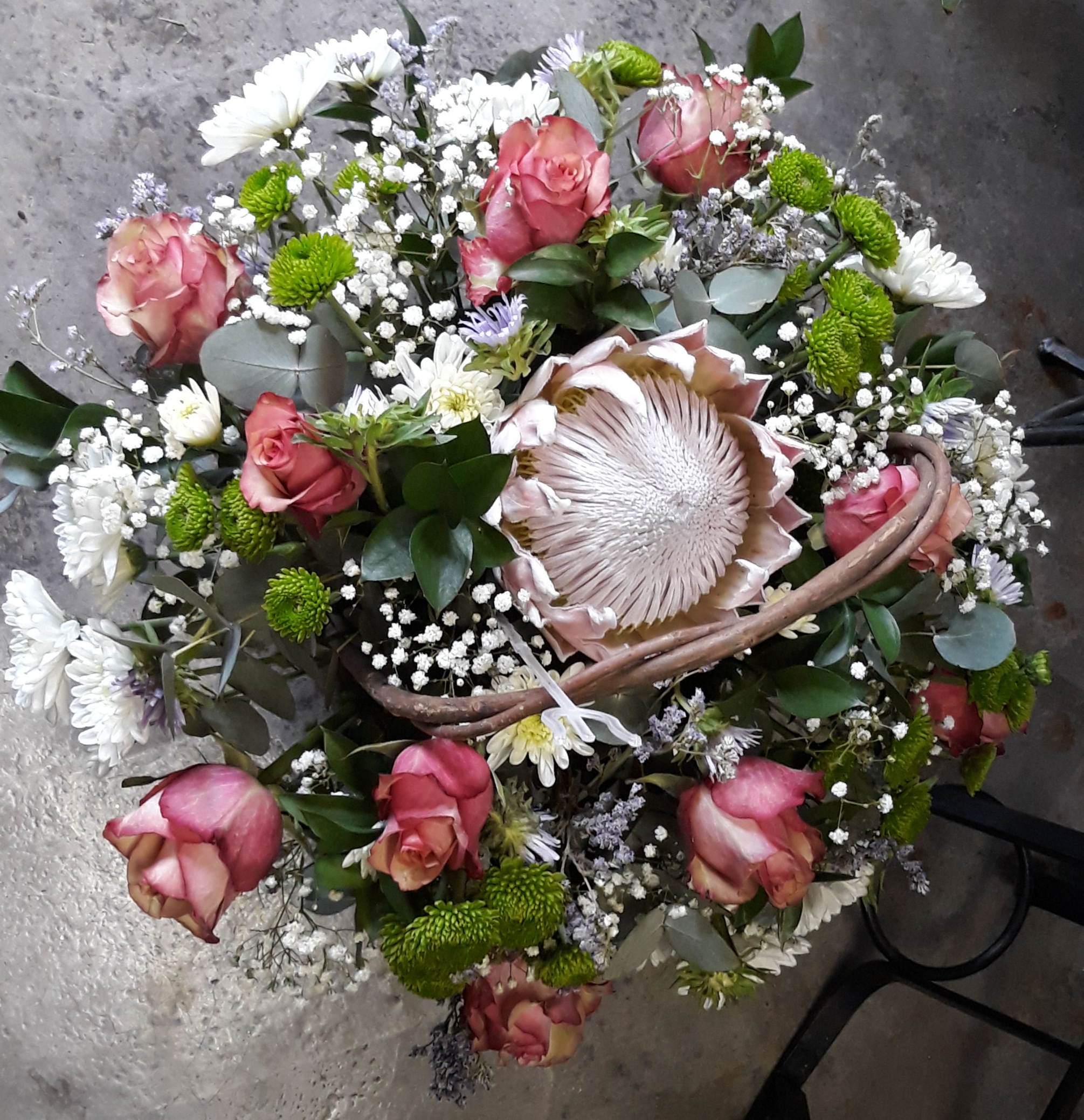 King protea & rose basket( king protea can be substituted by other proteas) quantity