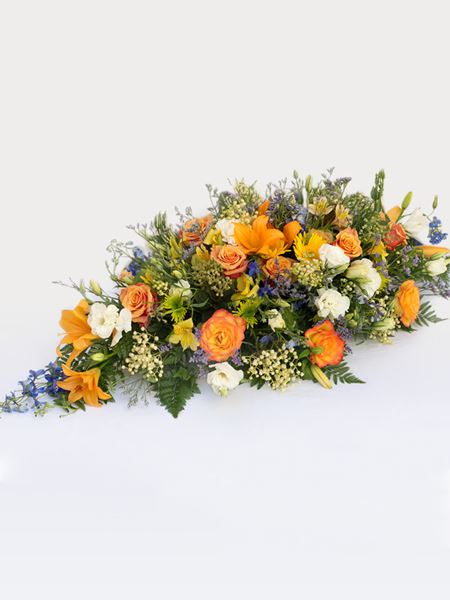Multicolored coffin arrangement quantity